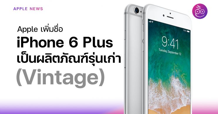 Appleเพิ่มชื่อ iPhone 6 Plus เป็นผลิตภัณฑ์รุ่นเก่า (Vintage) นำเครื่องไปซ่อมที่ Apple หรือศูนย์บริการตัวแทนได้ หากที่ศูนย์ซ่อมยังมีอะไหล่เหลืออยู่