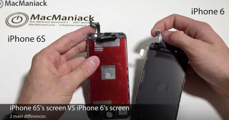 ล่าสุดมีคลิปเปรียบเทียบชิ้นส่วนหน้าจอของ iPhone 6 และ iPhone 6s โพสต์โดย MacManiack ซึ่งชิ้นส่วนของทั้งสองหน้าจอนั้นแทบจะเหมือนกัน แต่มีจุดหนึ่งที่แตกต่างกันครับ