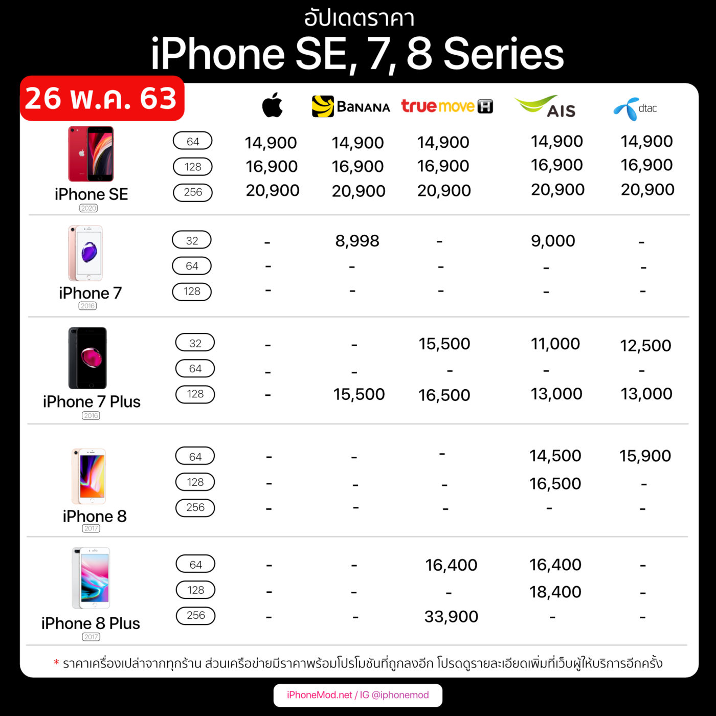 ราคา iPhone 7, 7 Plus, iPhone 8, 8 Plus และ iPhone SE รุ่นที่ 2 ล่าสุด 26 พฤษภาคม 2563