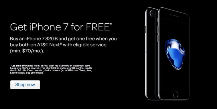 AT&T เครือข่ายผู้ให้บริการโทรศัพท์เคลื่อนที่ยักษ์ใหญ่ในอเมริกา คลอดโปรโมชั่นแรง “iPhone 7 ซื้อ 1 แถม 1” โดยเงื่อนในนั้นจะเป็นไปตามที่ทาง AT&T กำหนดครับใครที่อยู่อเมริกาแล้วอยากได้ iPhone 7 เอาไว้ใช้งานสามารถดูรายละเอียดเพิ่มเติมได้ที่นี่เลย