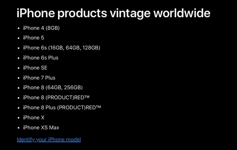 Apple เพิ่มชื่อ iPhone 7 Plus, iPhone 8, iPhone 8 Plus เป็นผลิตภัณฑ์รุ่นเก่า (Vintage), โดย Apple เพิ่ม iPhone 8 รุ่นความจุ 64GB, 256GB เข้าไปในรายการ แต่ยังไม่ได้เพิ่มรุ่นความจุ 128GB เข้าไปเนื่องจากรุ่นนี้มีระยะเวลาจำหน่ายค่อนข้างนาน