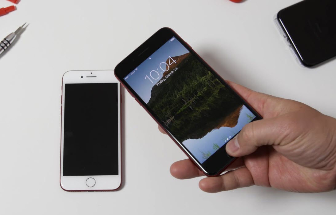 Danny Winget สื่อต่างประเทศได้เผยแพร่วิดีโอใน YouTube เกี่ยวกับการเปลี่ยนหน้าจอ iPhone 7 Plus (PRODUCT)RED จากสีขาวให้เป็นสีดำ แต่ไม่ใช่การติดฟิล์มหน้าจอ ไม่ใช่การเอาหน้าจอสีดำมาใส่ในเครื่องสีแดง แต่เป็นการย้ายเครื่องสีดำ (iPhone 7 Plus Jet Black) มาใส่ที่ฝาหลังสีแดงเลย