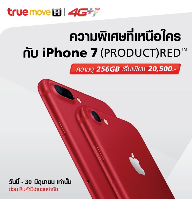 หากใครกำลังมองหา iPhone 7 RED ความจุสูงสุดอยู่ ไม่ควรพลาดโปรโมชันจากทรูมูฟ เอช (TrueMove H)