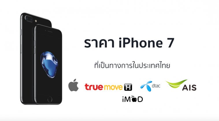 ประกาศออกมาแล้วอย่างเป็นทางการครับสำหรับราคาของ iPhone 7 และ iPhone 7 Plus ที่จะเปิดขายในประเทศไทยในวันที่ 21 ตุลามคม 2559 ที่กำลังจะถึงนี้ ในหน้านี้จะแจ้งราคาเครื่องเปล่าและราคาเครื่องที่มาพร้อมแพ็กเกจจาก TrueMove H, AIS, dtac ให้ได้ชมเพื่อเปรียบเทียบราคาครับ