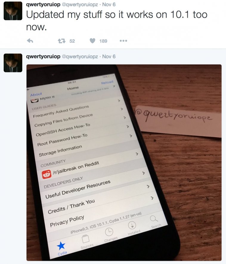 ข้อความทวีตโดย @qwertyoruiopz แจ้งให้ทราบว่าเขาสามารถเจลเบรค iPhone 7 ที่ติดตั้ง iOS 10.1.1 ได้แล้ว แต่…. ไม่ได้หมายความว่าเขาจะปล่อยเครื่องมือออกมาให้ใช้งาน