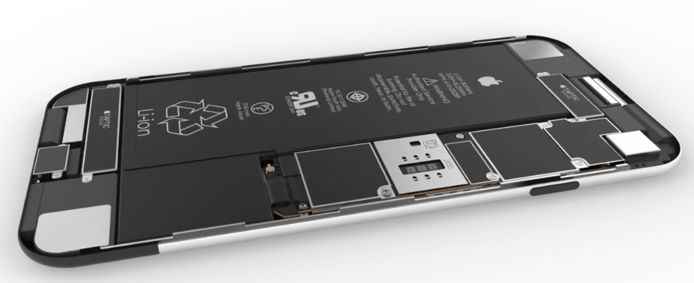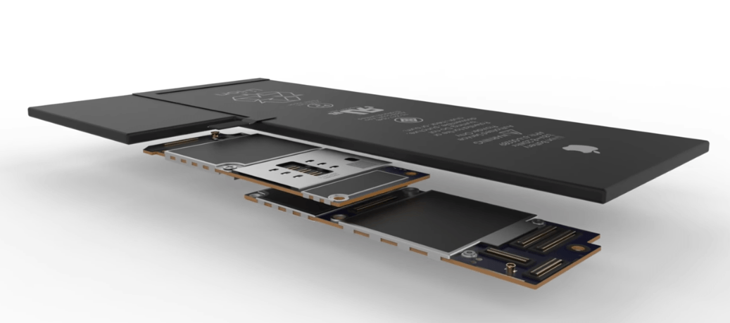 แบตเตอรี่จมีขนาดใหญ่รูปตัว L และมี Apple Charge Pad เอาไว้สำหรับการชาร์จแบตเตอรี่แบบไร้สายอีกด้วย