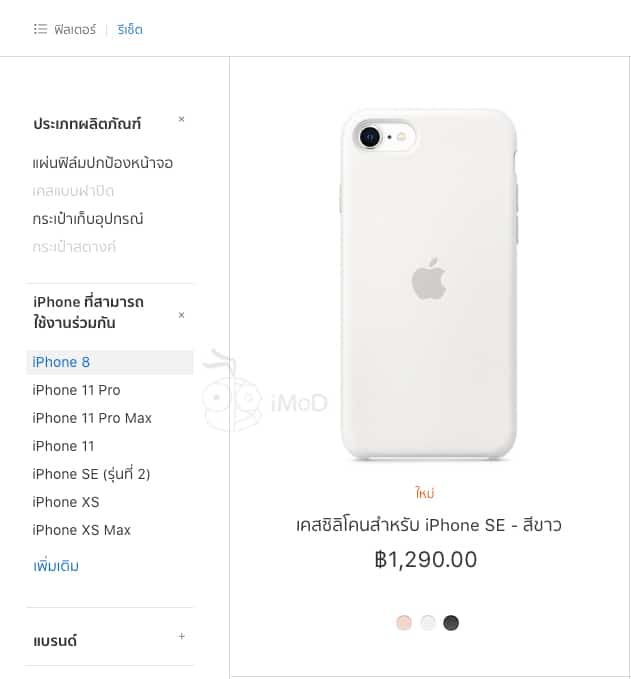 จะเห็นว่าขนาดตัวเครื่องเท่ากันเลย ดังนั้นยืนยันได้ว่าผู้ใช้สามารถนำเคส iPhone 8 มาใส่ iPhone SE (รุ่นที่ 2) ได้ โดยเมื่อไปกรองการค้นหาในหน้าเว็บขายเคสของ Apple พบว่าเคส iPhone SE (รุ่นที่ 2) ใส่ iPhone 8 ได้เช่นกัน