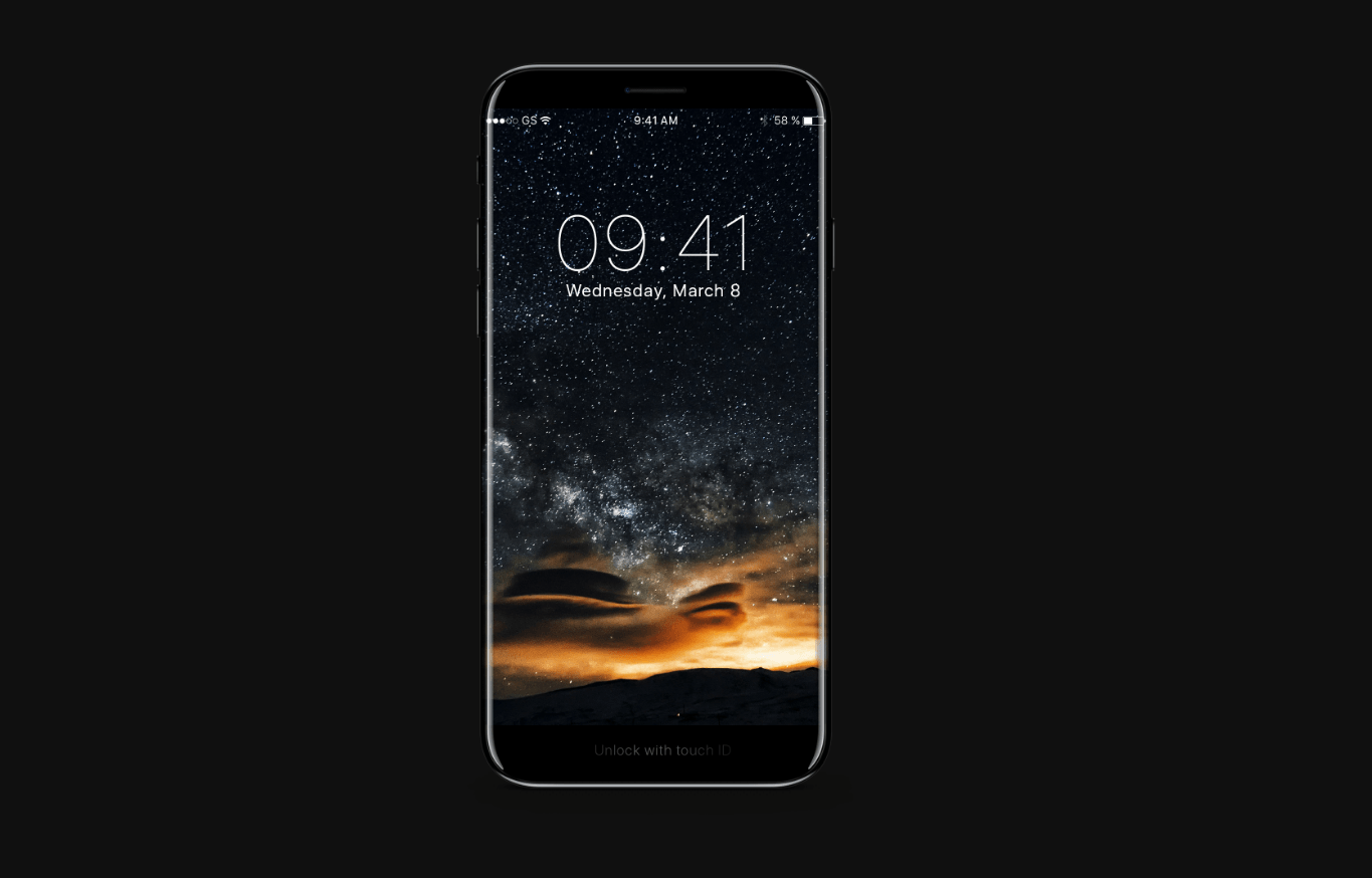 ล่าสุด AlHasan Husni ได้ทำภาพแนวคิดมาให้ชมกัน ในภาพแนวคิดชุดนี้จะเป็น iPhone 8 จอเต็มขอบด้านข้าง (มีส่วนโค้งเล็กน้อย) โดยมีการเหลือพื้นที่ขอบด้านบนไว้สำหรับลำโพง และเหลือขอบด้านล่างไว้สำหรับ ปุ่ม Home เสมือน