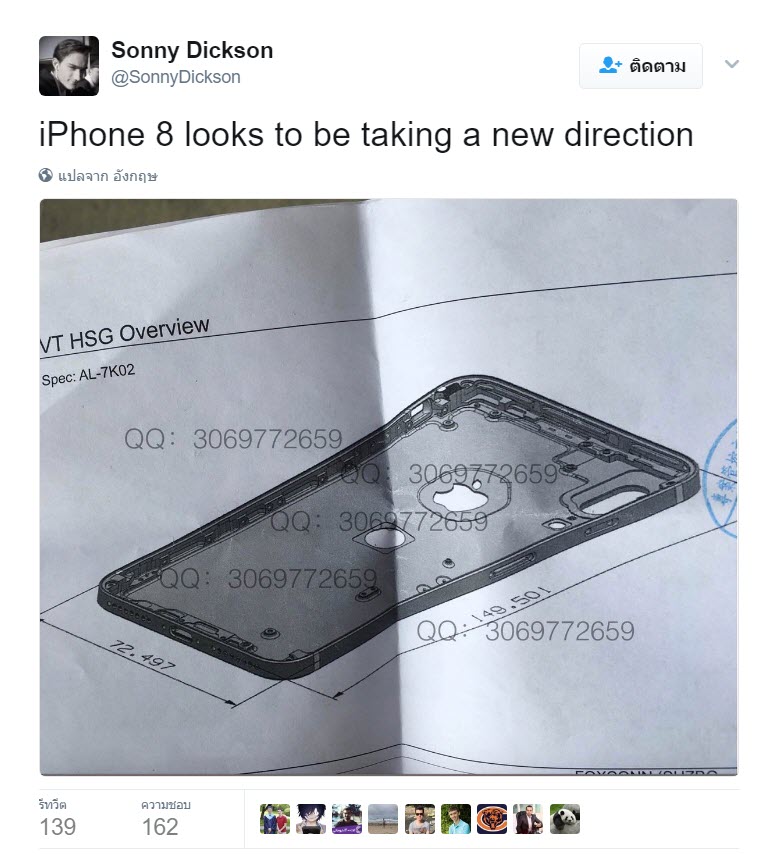 ภาพหลุดนี้มาจาก Sonny Dickson ที่โพสต์ผ่าน Twitter โดย Sonny Dickson มักจะเผยภาพหลุดชิ้นส่วน iPhone รุ่นใหม่มาให้ติดตามกันเสมอ