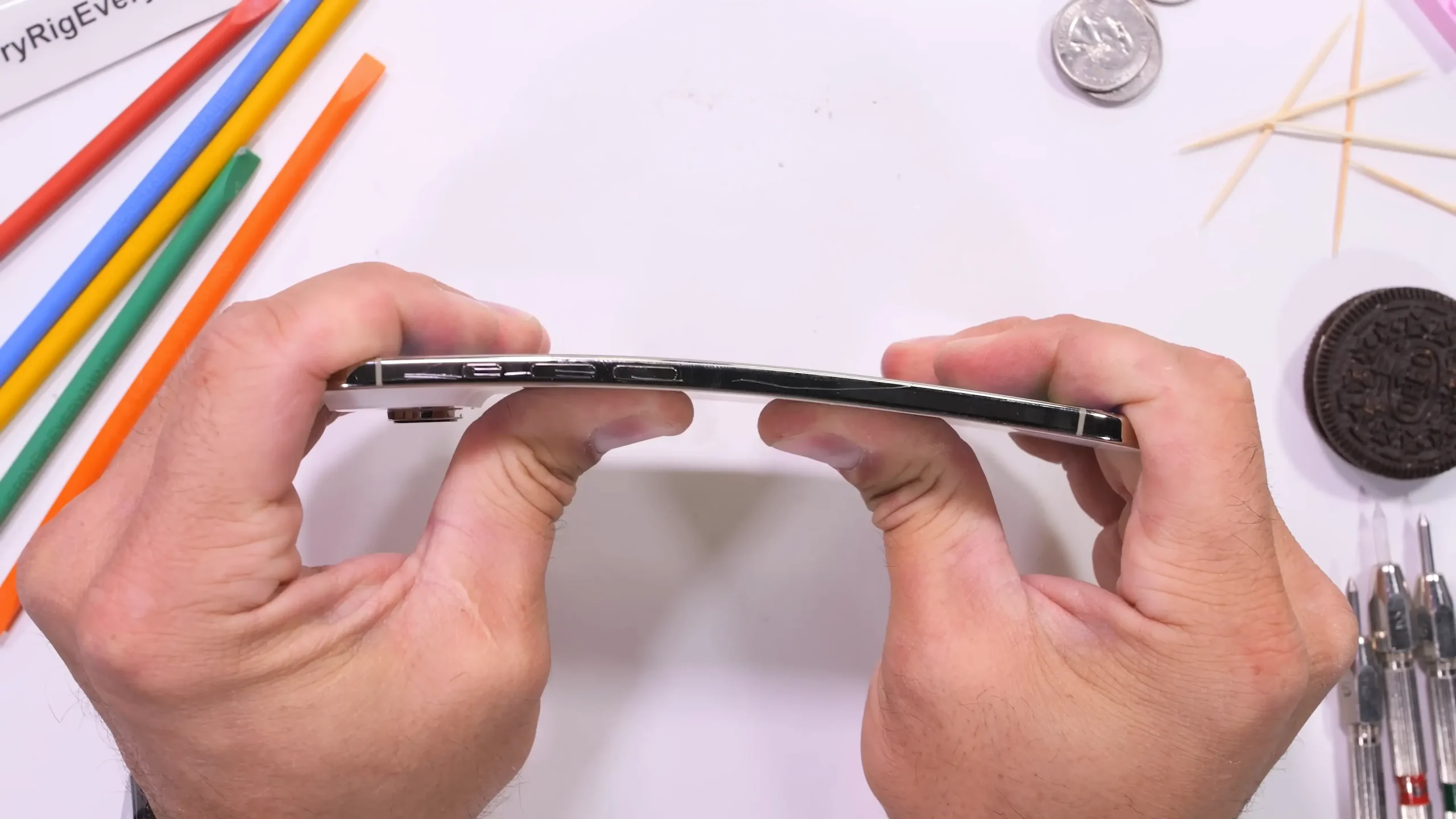 กรอบเครื่องไทเทเนียมเกรด 5 เป็นโลหะที่เบากว่า และแข็งแรงกว่าโลหะอื่น ๆ โดย JerryRigEverything ได้ทดสอบหักงอตัวเครื่องด้วยมือเปล่าพบว่า ตัวเครื่องไม่ได้รับความเสียหายใด ๆ แข็งแรงมาก ๆ