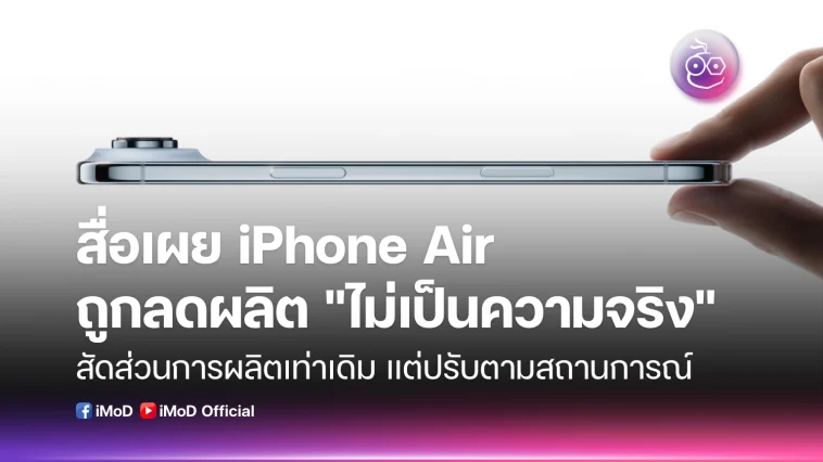 สื่อออกมาโต้ว่าข่าวเรื่องการลดกำลังผลิต iPhone Air อาจไม่เป็นความจริง สัดส่วนการผลิตยังคงเดิม แต่อนาคตเปลี่ยนได้ตามสถานการณ์