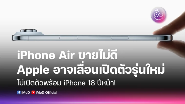 มีรายงานว่า Apple อาจพิจารณาเลื่อนเปิดตัว iPhone Air รุ่นใหม่ออกไปเนื่องจากรุ่นปัจจุบันขายไม่ดี อาจไม่เปิดตัวพร้อม iPhone 18 Pro ถูกเลื่อนออกไปอย่างไม่มีกำหนด