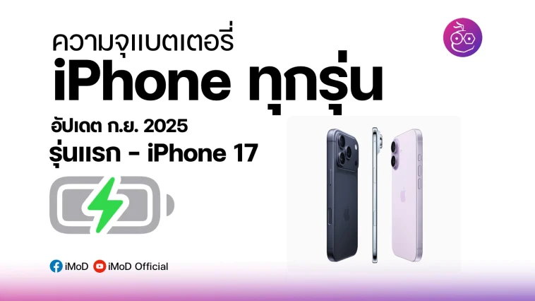 ความจุแบตเตอรี่ iPhone ทุกรุ่น ตั้งแต่รุ่นแรก ถึง iPhone 17 (อัปเดต ก.ย. 2025)
