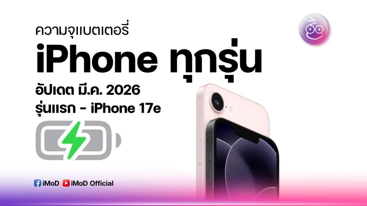 ความจุแบตเตอรี่ iPhone ทุกรุ่น ตั้งแต่รุ่นแรก ถึง iPhone 17e (อัปเดต มี.ค. 2026)