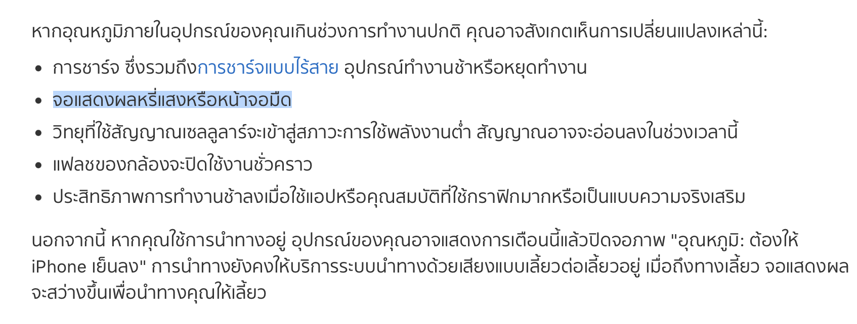 ดังนั้นให้เข้าใจว่าหาก iPhone เครื่องเริ่มร้อน ระบบจะปรับความสว่างหน้าจอเองโดยหรี่ความสว่างหน้าจอให้อยู่ในระดับต่ำที่สุด ซึ่งเป็นการทำงานของระบบเอง ไม่ได้เป็นปัญหาที่ตัวเครื่องแต่อย่างใด