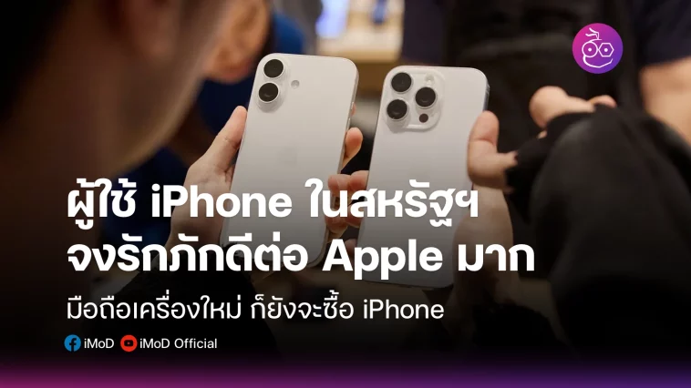 ผู้ใช้ iPhone สหรัฐฯ ยังจงรักภักดีต่อแบรนด์ Apple เหนือกว่าแบรนด์อื่น ๆ แม้ตัวเลขผลสำรวจจะลดลงเล็กน้อย แต่ก็สูงกว่าเกณฑ์มากพอสมควร