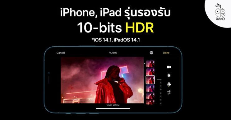 ผู้ใช้ iPhone, iPad รุ่นรองรับสามารถเล่นวิดีโอ HDR แบบ 10 บิตและแก้ไขวิดีโอในแอปรูปภาพได้ ซึ่ง Apple ได้เผยคุณสมบัตินี้ในการเปิดตัว iPhone 12, iPhone12 Pro