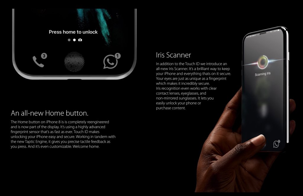 นอกจากปุ่ม Home เสมือน Kuo ยังเผยต่อว่า Apple อาจเพิ่มระบบการพิสูจน์ตัวตนนอกจาก Touch ID อย่างเช่น ระบบสแกนม่านตาหรือสแกนใบหน้าใน iPhone รุ่นใหม่นี้ด้วย