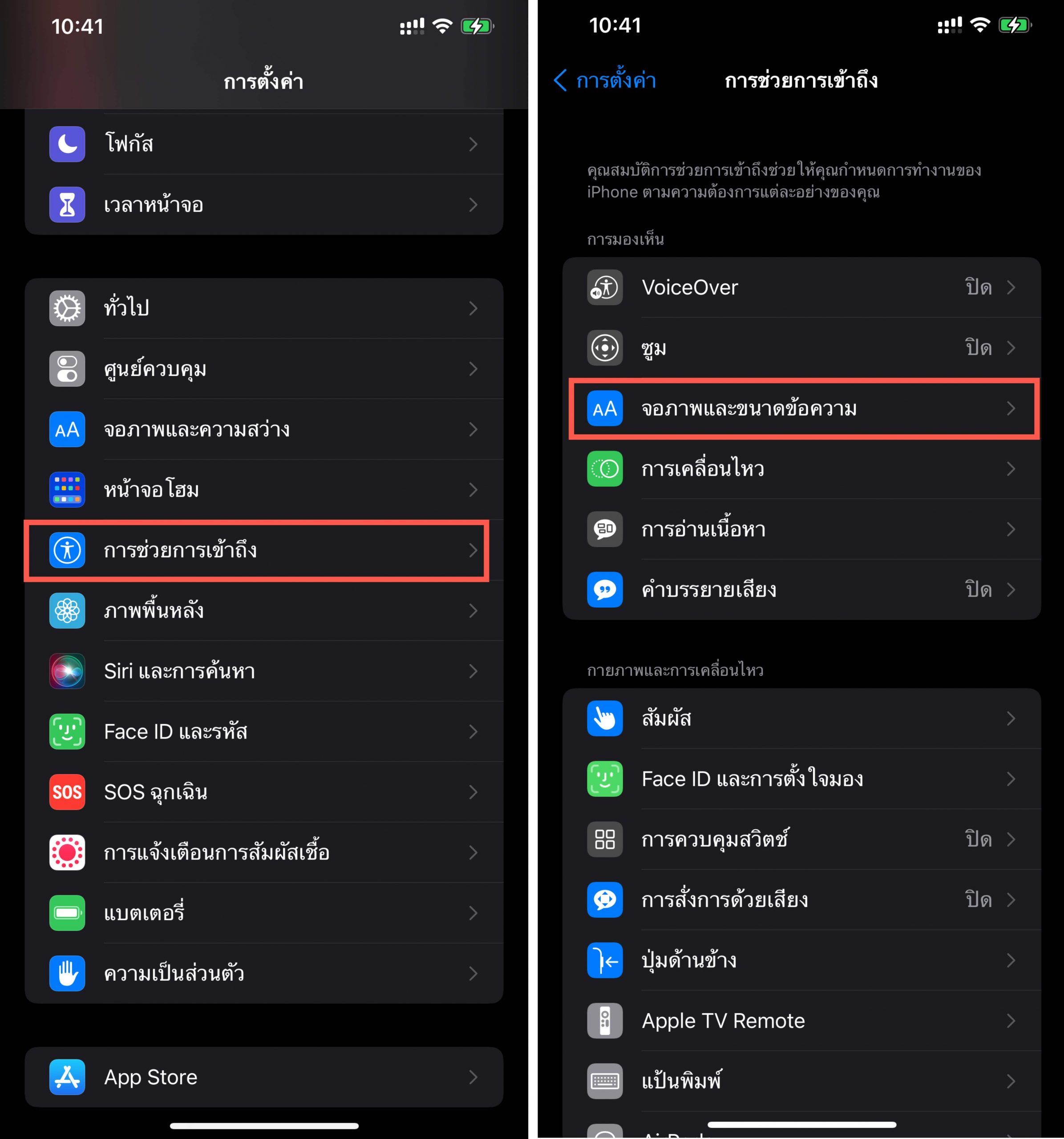 ไปที่การตั้งค่า > การช่วยการเข้าถึง > จอภาพและขนาดข้อความ