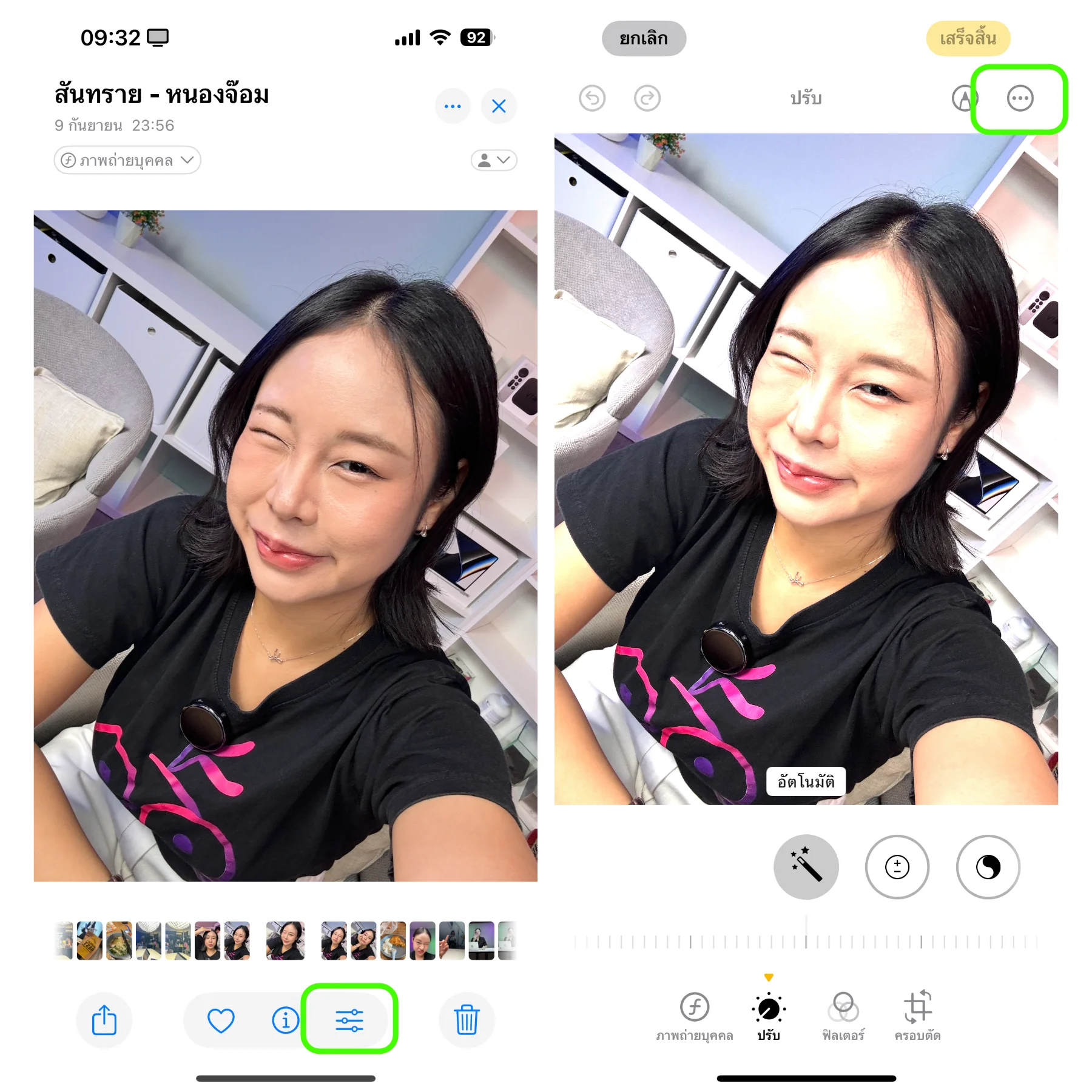 เลือกรูปภาพที่ต้องการปรับแต่ง และเลือกเมนูการแก้ไขรูปภาพ > ให้แตะที่เมนู … ที่มุมบนซ้าย