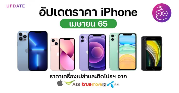 ข้อมูลนี้แสดงราคา iPhone เครื่องเปล่ารุ่นที่ Apple วางขายออนไลน์และ iPhone ราคาพร้อมแพ็กเกจที่ถูกสุดของแต่ละเครือข่าย คือ AIS, TrueMove H, DTAC (ไม่รวมร้านค้าอื่นๆ นอกจากนี้) ประจำเดือน เม.ย. 65