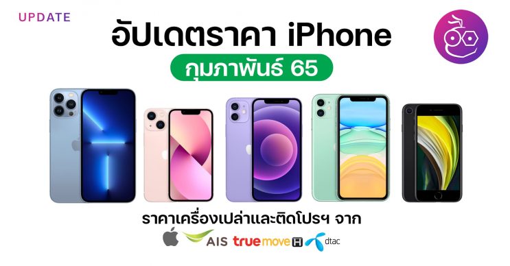 ข้อมูลนี้แสดงราคา iPhone เครื่องเปล่ารุ่นที่ Apple วางขายออนไลน์และ iPhone ราคาพร้อมแพ็กเกจที่ถูกสุดของแต่ละเครือข่าย คือ AIS, TrueMove H, DTAC (ไม่รวมร้านค้าอื่นๆ นอกจากนี้) ประจำเดือน ก.พ. 65