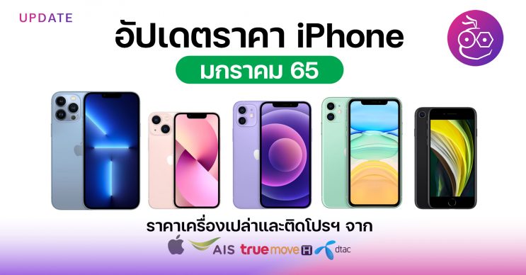 ข้อมูลนี้แสดงราคา iPhone เครื่องเปล่ารุ่นที่ Apple วางขายออนไลน์และ iPhone ราคาพร้อมแพ็กเกจที่ถูกสุดของแต่ละเครือข่าย คือ AIS, TrueMove H, DTAC (ไม่รวมร้านค้าอื่นๆ นอกจากนี้) ประจำเดือน ม.ค. 65