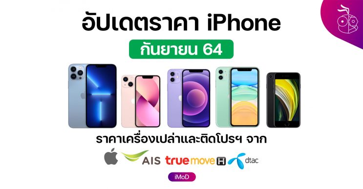 ราคา iPhone ล่าสุดจาก Apple, AIS, TrueMove H, DTAC ประจำเดือน ก.ย. 64