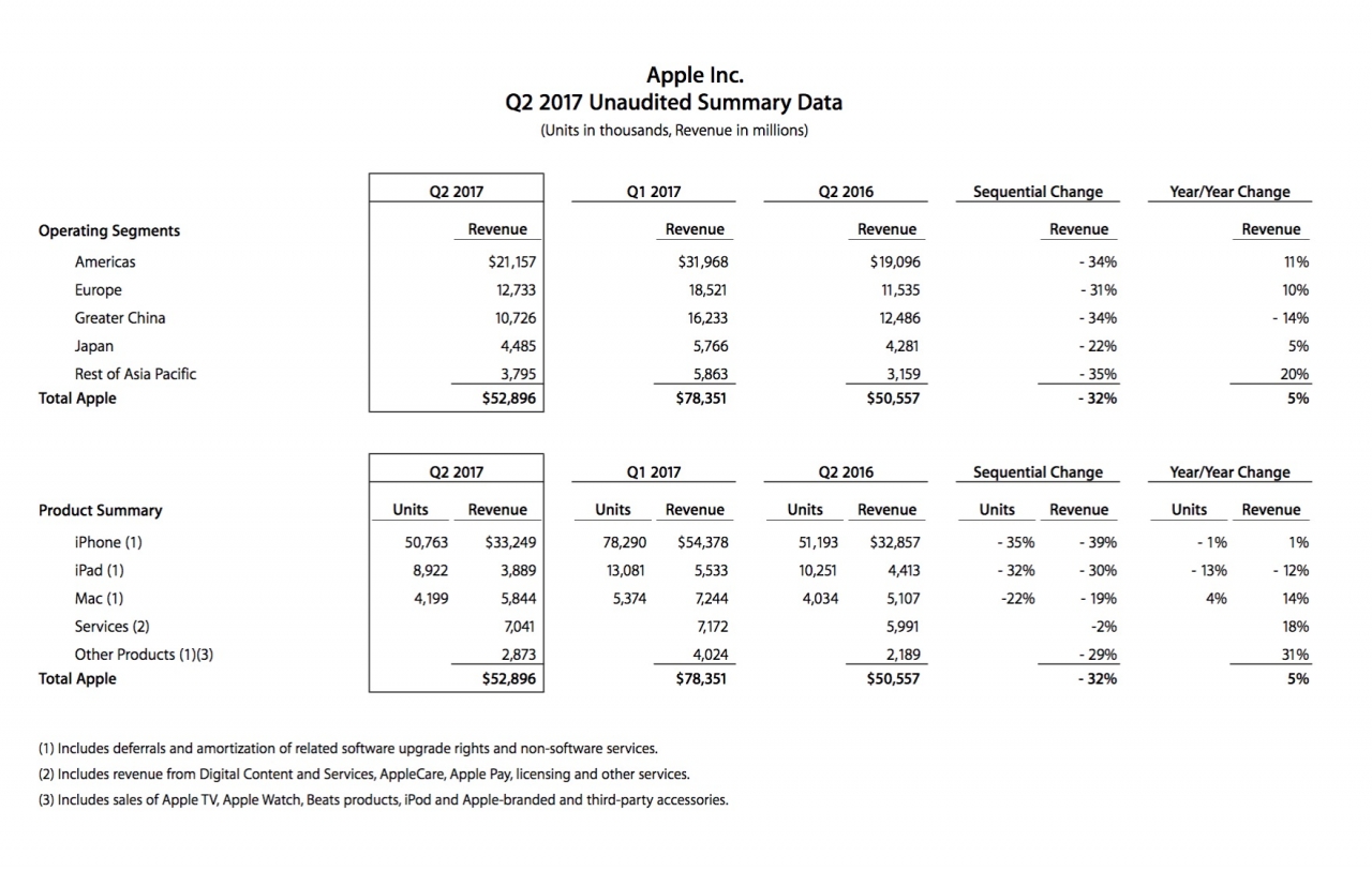 ผลประกอบการไตรมาสที่ 2 ปี 2017 ของ Apple