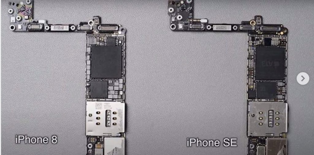Instagram ชื่อ Rico Cerva เผยภาพอุปกรณ์ภายในตัวเครื่องที่เปรียบเทียบระหว่าง iPhone SE ใหม่และ iPhone 8 นำไปสู่ที่มาของวิดีโอการชำแหละเครื่อง iPhone SE (เป็นภาษาจีนแต่มีซับเป็นภาษาอังกฤษ)