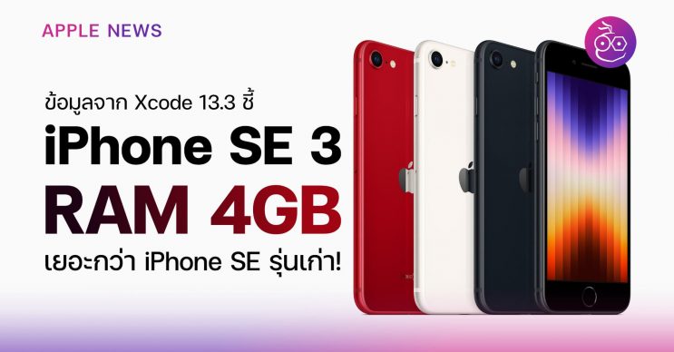 ข้อมูลจาก Xcode 13.3 เผยว่า iPhone SE 3 มี RAM เยอะกว่า iPhone SE รุ่นเก่า ทำงานและดึงข้อมูลได้เร็วขึ้นด้วยแรมที่เพิ่มมา ยังใช้ชิป A15 Bionic และรองรับ 5G ด้วย