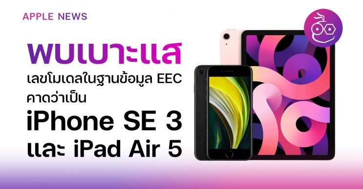 พบเบาะแสการลงทะเบียนเลขโมเดลในฐานข้อมูล EEC คาดว่าเป็น iPhone SE รุ่นที่ 3 และ iPad Air รุ่นที่ 5 ที่อาจเปิดตัวในช่วงต้นปีไปจนถึงกลางปี 2022 นี้