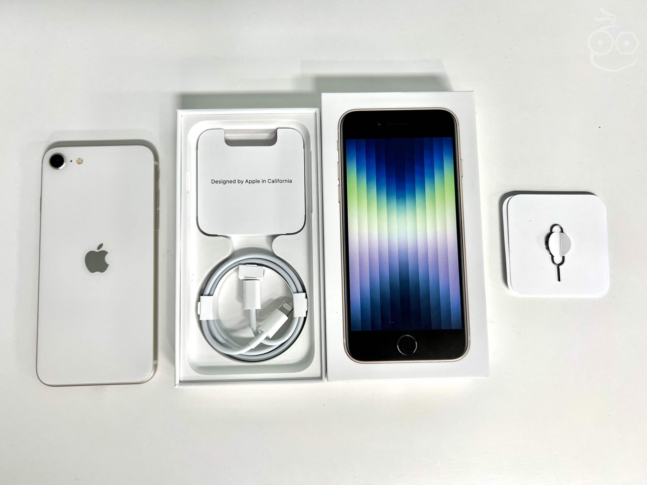 iPhone SE รุ่น 3 รุ่นที่เราได้รีวิวนี้เป็นรุ่นสีสตาร์ไลท์ โดยตัวกล่องของ iPhone SE รุ่น 3 นั้นยังเป็นกล่องแบบบางเหมือนเดิม และไม่มีพลาสติกหุ้มกล่อง เหมือนกันกับ iPhone 13 Series ซึ่งใช้ใช้การ ปิดผนึกกล่องเป็นแถบซีล จำนวน 2 จุด (บริเวณหลังกล่องทั้งด้านบนและด้านล่าง)