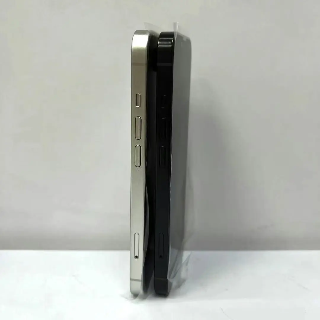 ภาพต่อมาเป็นด้านข้างตัวเครื่อง เห็นได้ว่ามีปุ่มปิดเสียงสีส้ม ปุ่มเพิ่มลดเสียง และช่องใส่ซิม สื่อได้ว่าตัวเครื่องจะยังไม่มีปุ่ม Action และ Camera Control เหมือน iPhone 16