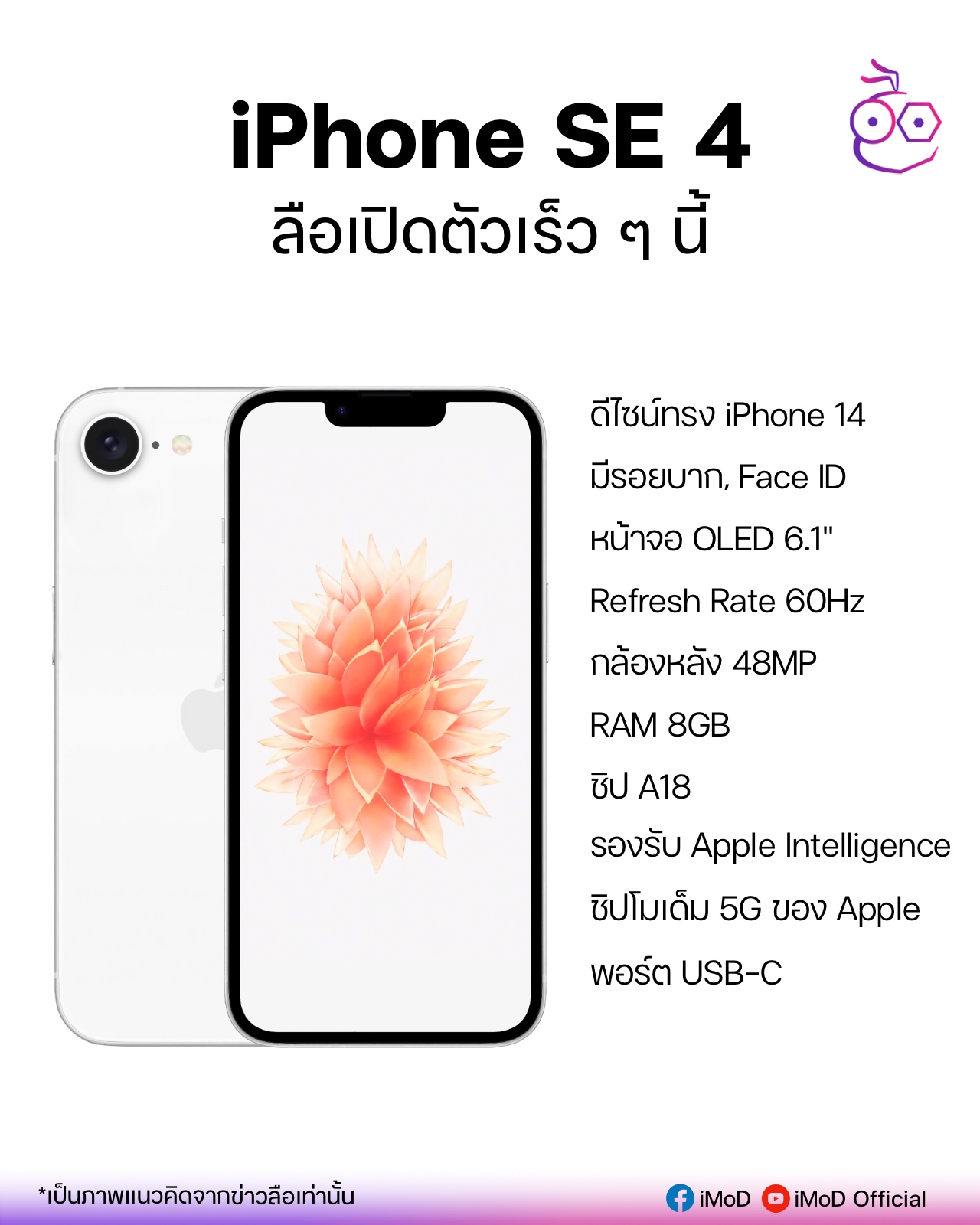 แน่นอนว่าข้อมูลดังกล่าวอาจเป็นข้อมูลที่ทำขึ้นมาเองตามข่าวลือก็ได้ ดังนั้นรอกันอีกอึดใจเดียว วันที่ 19 ก.พ. 2025 นี้, iPhone SE 4 จะเป็นอย่างไร เปิดตัวจริงหรือไม่ รอดูกัน …