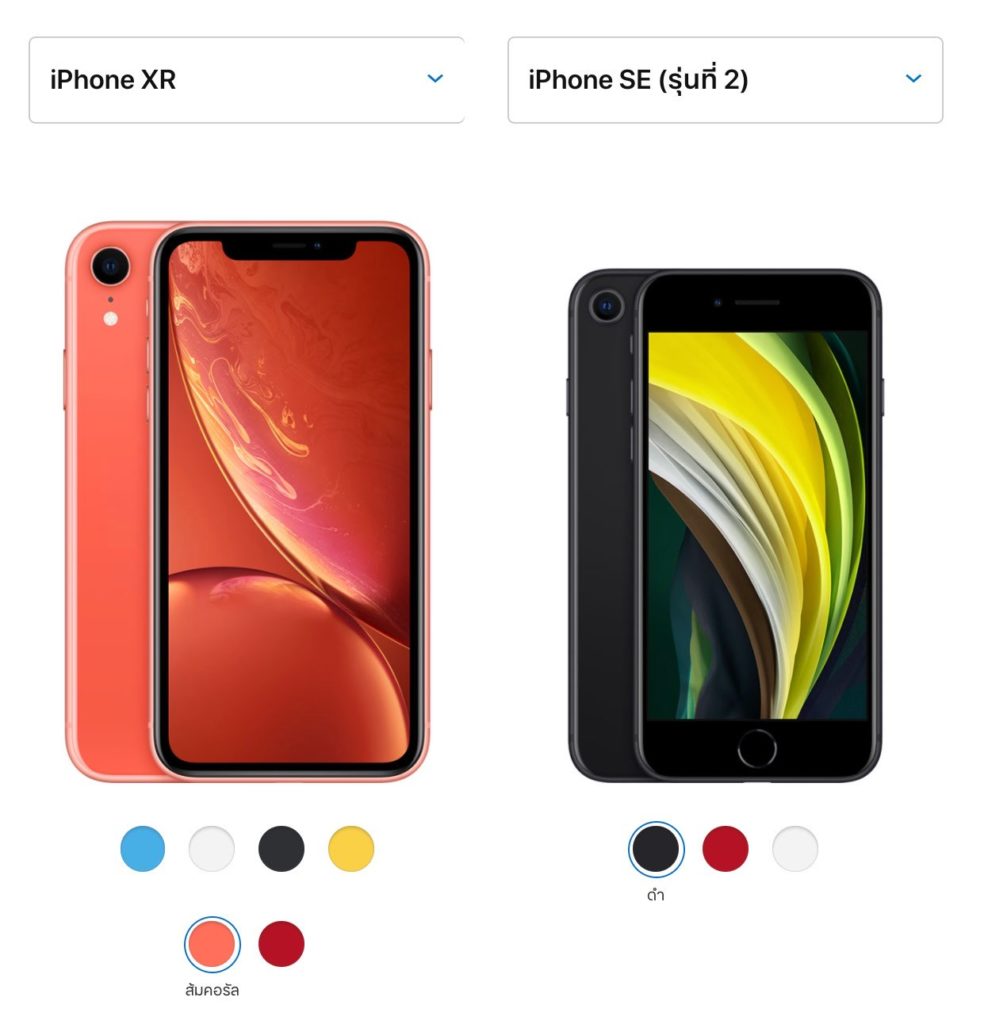 - iPhone SE มีสีตัวเครื่องให้เลือกน้อยกว่า iPhone XR