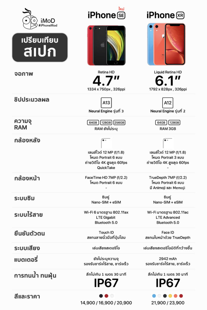 เปรียบเทียบสเปก iPhone SE รุ่นที่ 2 กับ iPhone XR