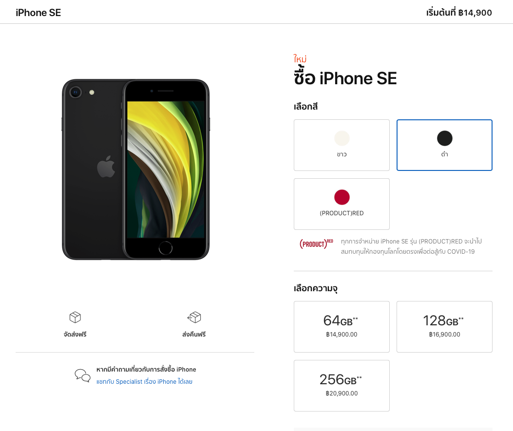 - iPhone SE (รุ่นที่ 2) 256GB – ราคา 20,900 บาท