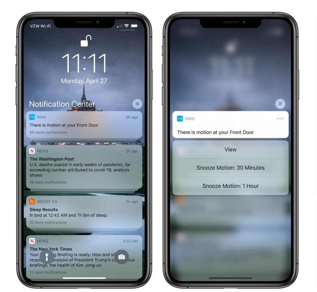 ภาพการทำงาน Haptic Touch ในส่วนการแจ้งเตือนบน iPhone 11