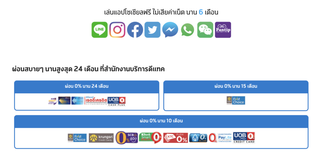 • ผ่อน 0% นานสูงสุด 24 เดือน ผ่านบัตรเครดิตที่ร่วมรายการ