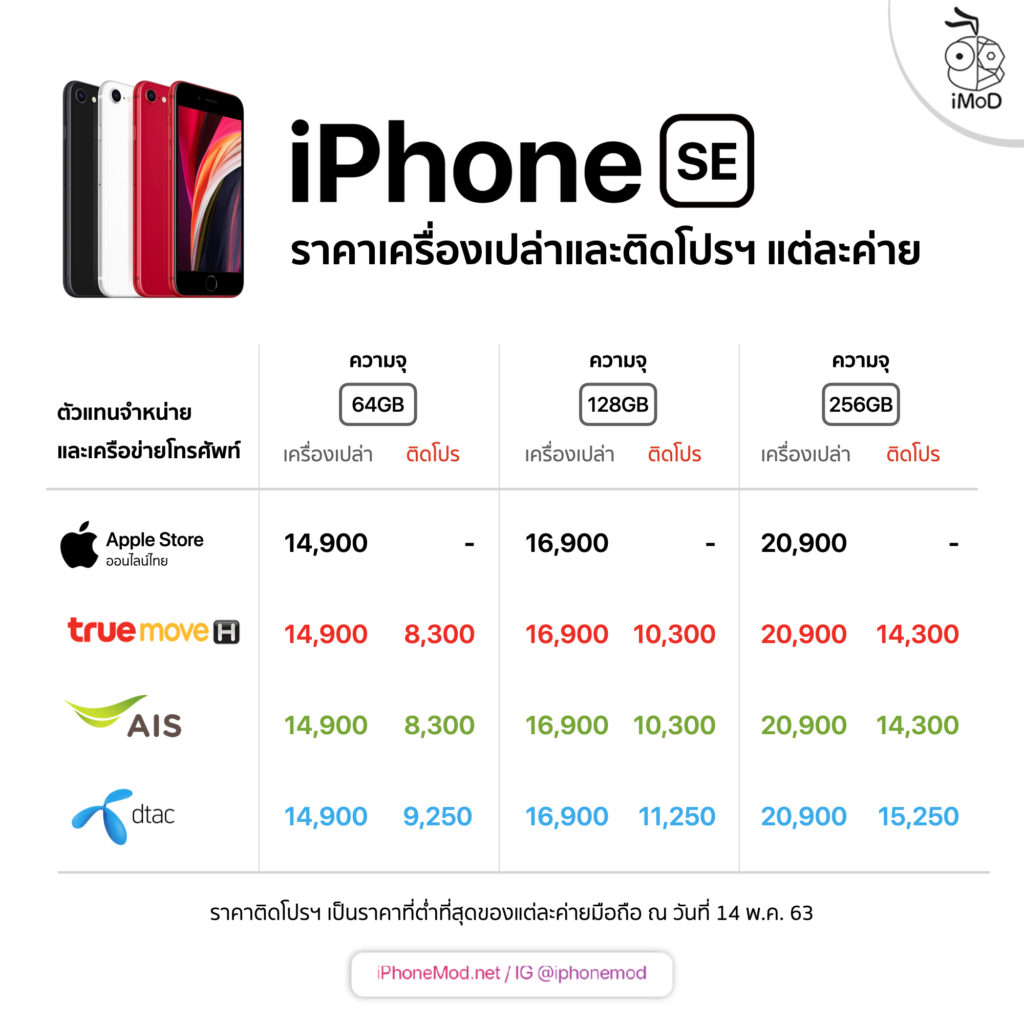 ตัวแทนจำหน่ายและเครือข่ายมือถือเปิดให้สั่งของ iPhone SE รุ่นที่ 2 (2020) ตั้งแต่วันที่ 14 พฤษภาคม 2563 เวลา 08.00 เป็นต้นไป ทีมงานได้รวบรวมโปรโมชันทั้งหมดมาให้ชมกันค่ะ