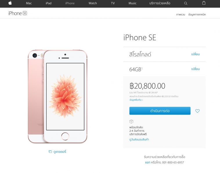 Apple Store Online ประเทศไทยขาย iPhone SE แล้ว