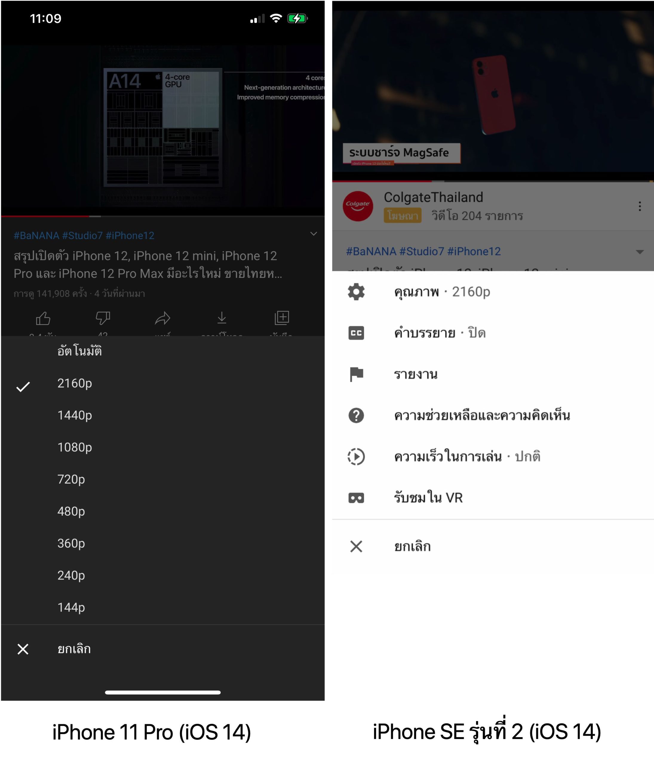ก่อนหน้านี้ YouTube ปรับให้ iPhone ที่ใช้ iOS 14 สามารถเลือกความละเอียดวิดีโอ 2160p เนื่องจาก iOS 14 รองรับ Google VP9 codec แล้ว แต่จะได้เฉพาะ HDR แต่ตอนนี้ไม่เป็น HDR ก็เลือกความละเอียดวิดีโอ 2160p ได้