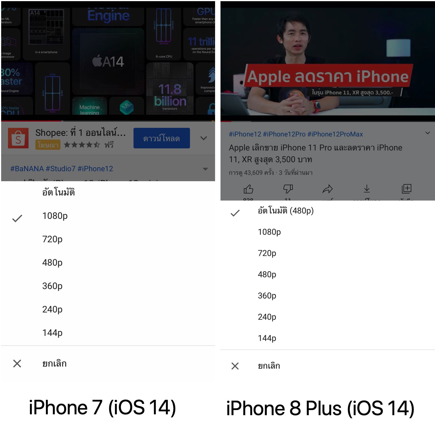 แต่ใน iPhone 7, iPhone 8 Plus ที่ใช้ iOS 14 ไม่สามารถเลือกความละเอียดสูงสุดที่ 2160p ได้