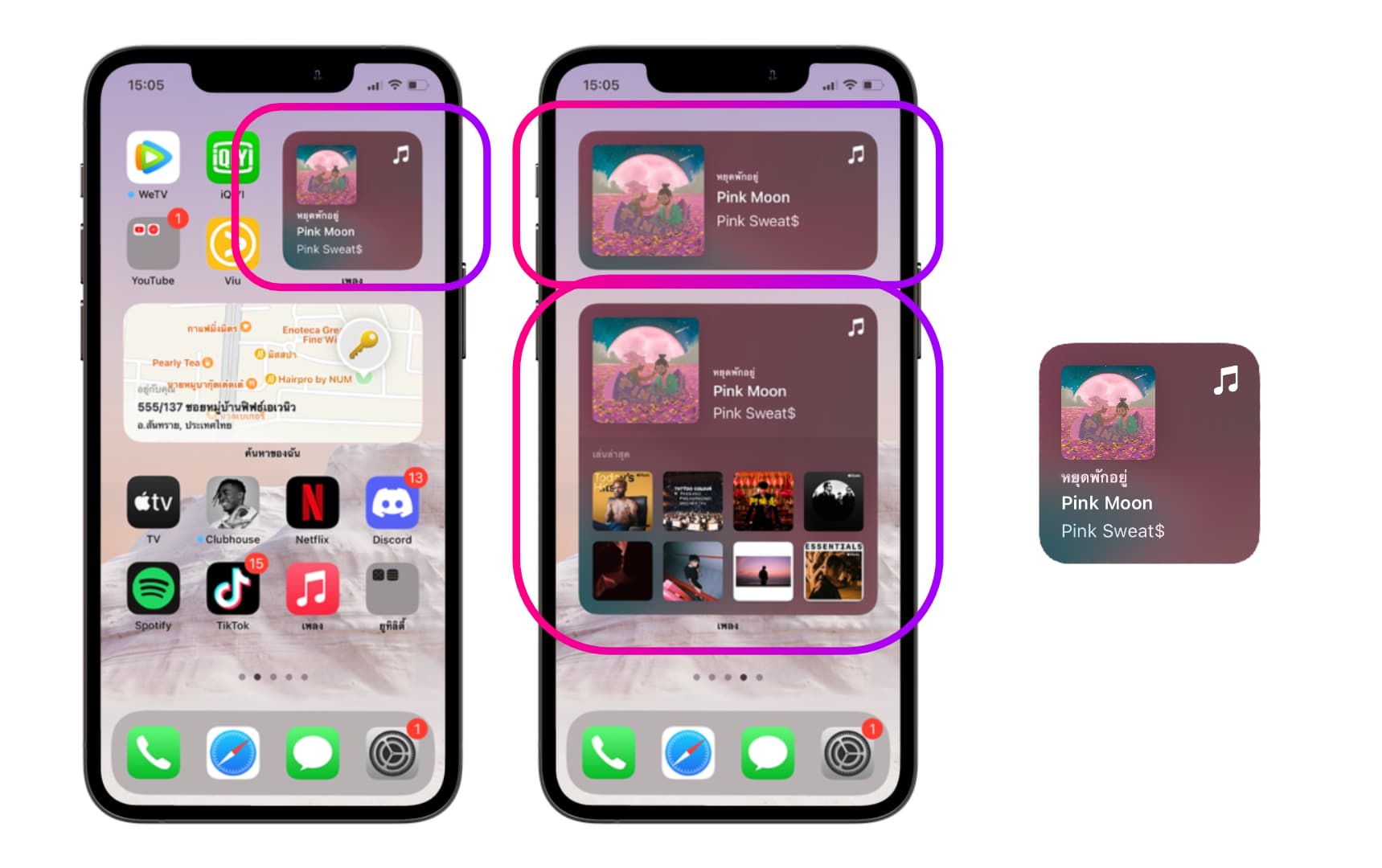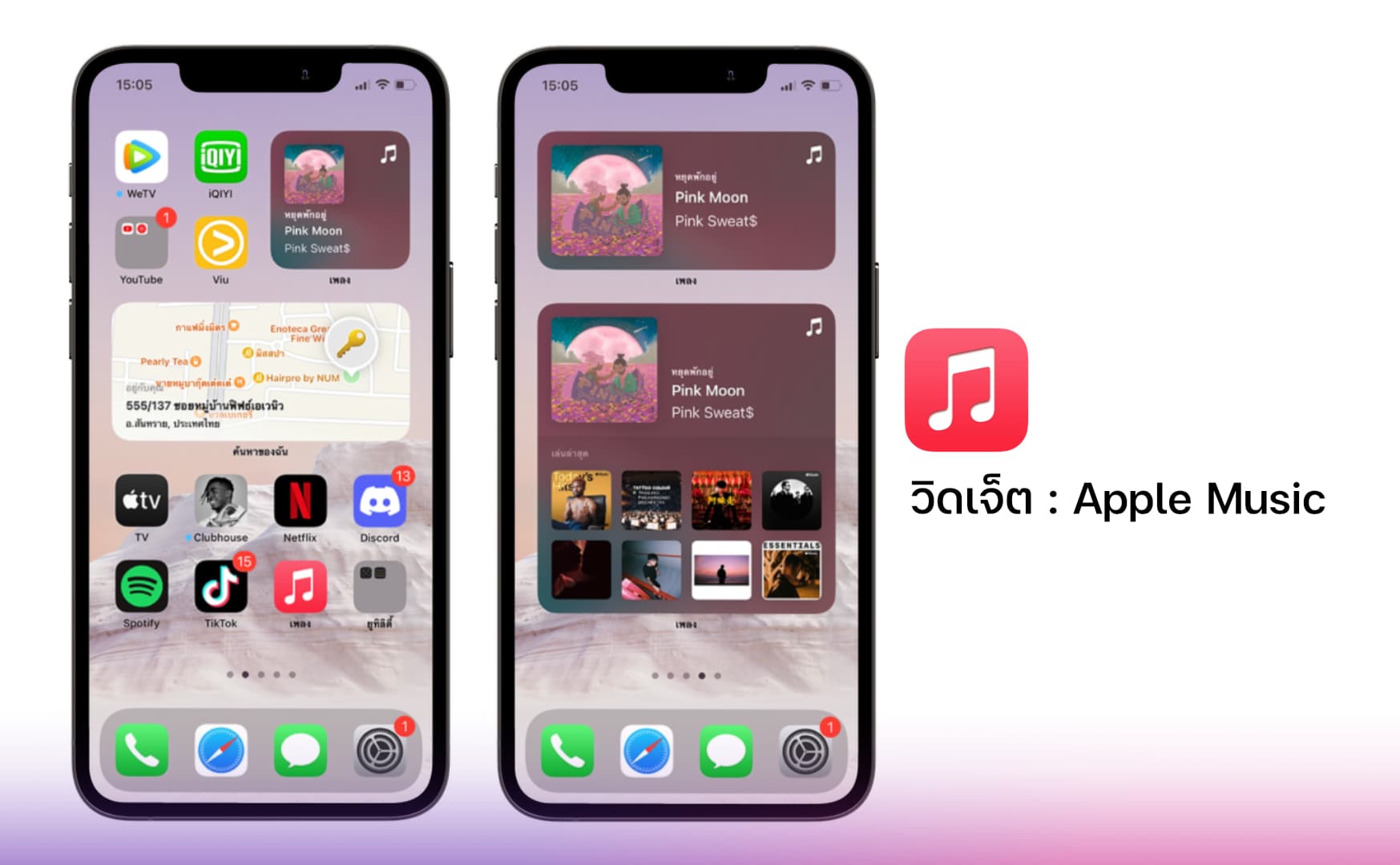 วิดเจ็ต Apple Music นอกจากจะมีประโยชน์ ใช้งานได้จริง ยังมีเรื่องของความสวยงามด้วย สามารถใช้วิดเจ็ตนี้ตกแต่งหน้าจอโฮมให้สวยงามได้ด้วย
