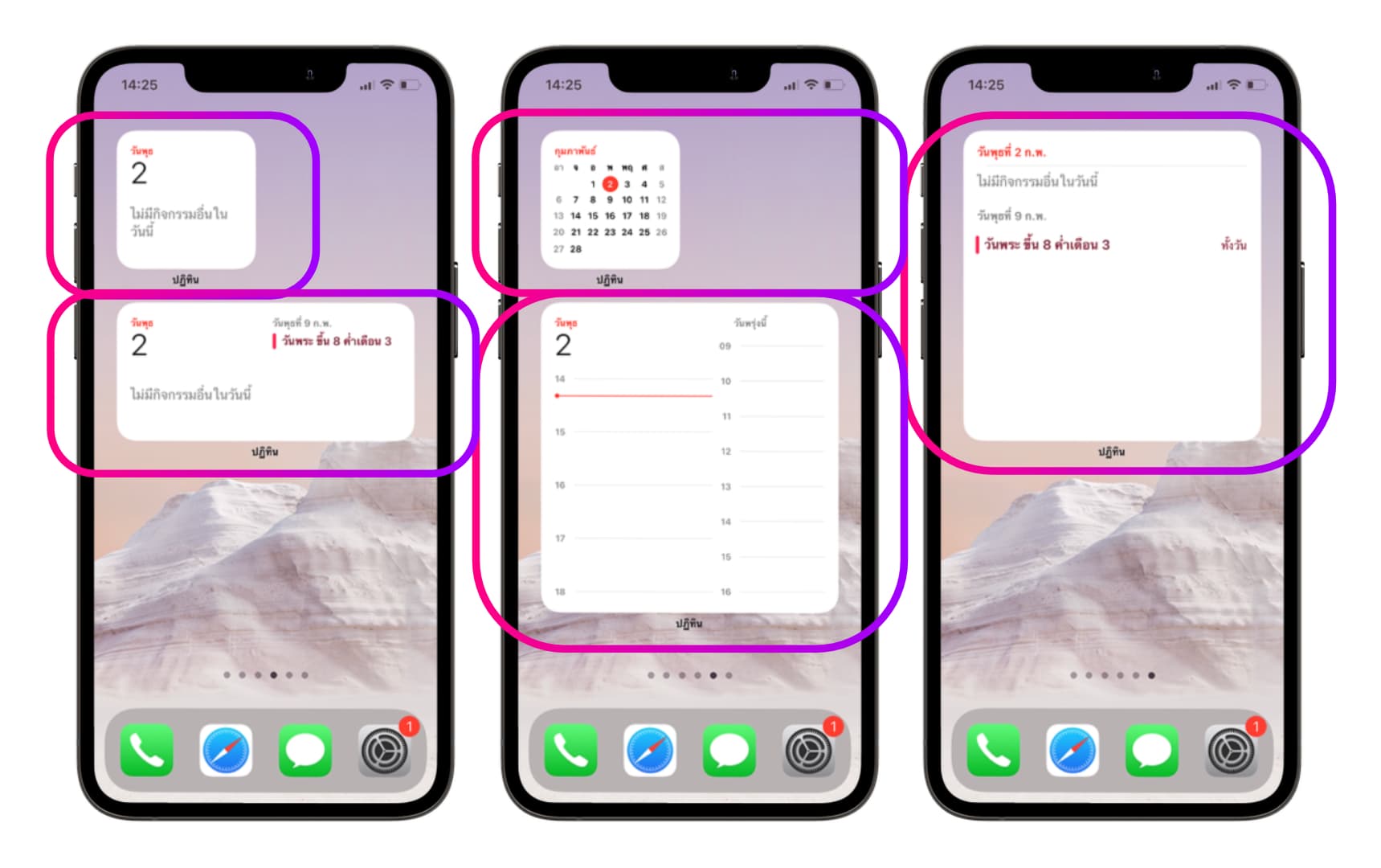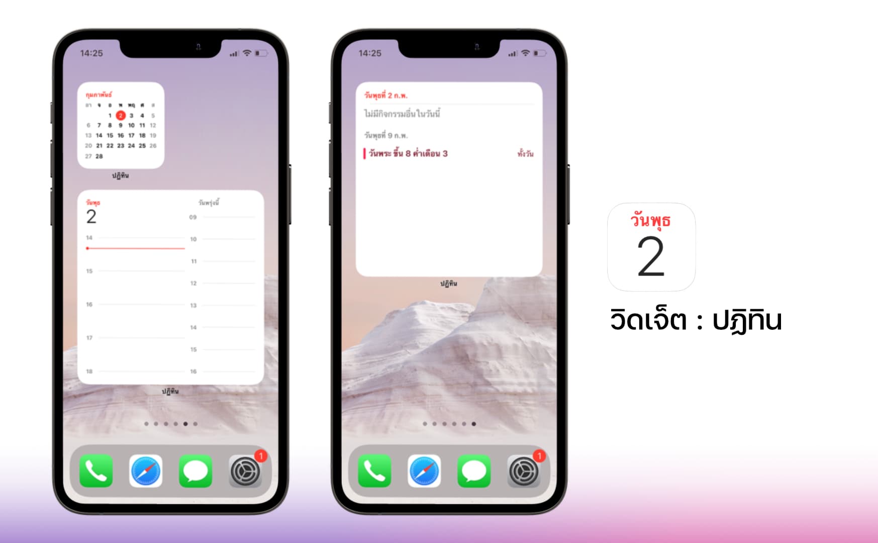 วิดเจ็ตปฏิทินก็เป็นอีกวิตเจ็ตที่เราน่าจะได้ใช้ทุกวัน นอกจากจะใช้ดูวันที่แล้ว ยังใช้เพื่อดูกิจกรรมอื่น ๆ วันหยุดสำคัญต่าง ๆ ได้ด้วย โดยวิดเจ็ตปฏิทินมี 5 แบบ ให้เลือกใช้ด้วยกัน