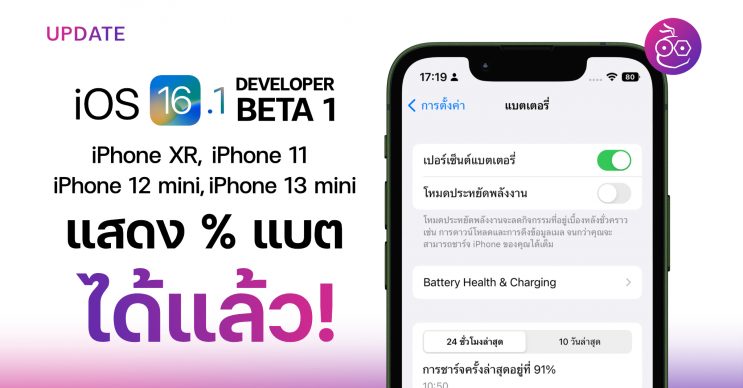 iOS 16.1 Developer Beta 1 ทำให้ iPhone XR, iPhone 11, iPhone 12 mini, iPhone 13 mini รองรับแสดงเปอร์เซ็นต์แบตเตอรี่ที่แถบสถานะแล้ว