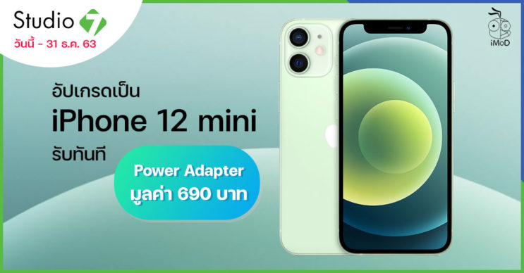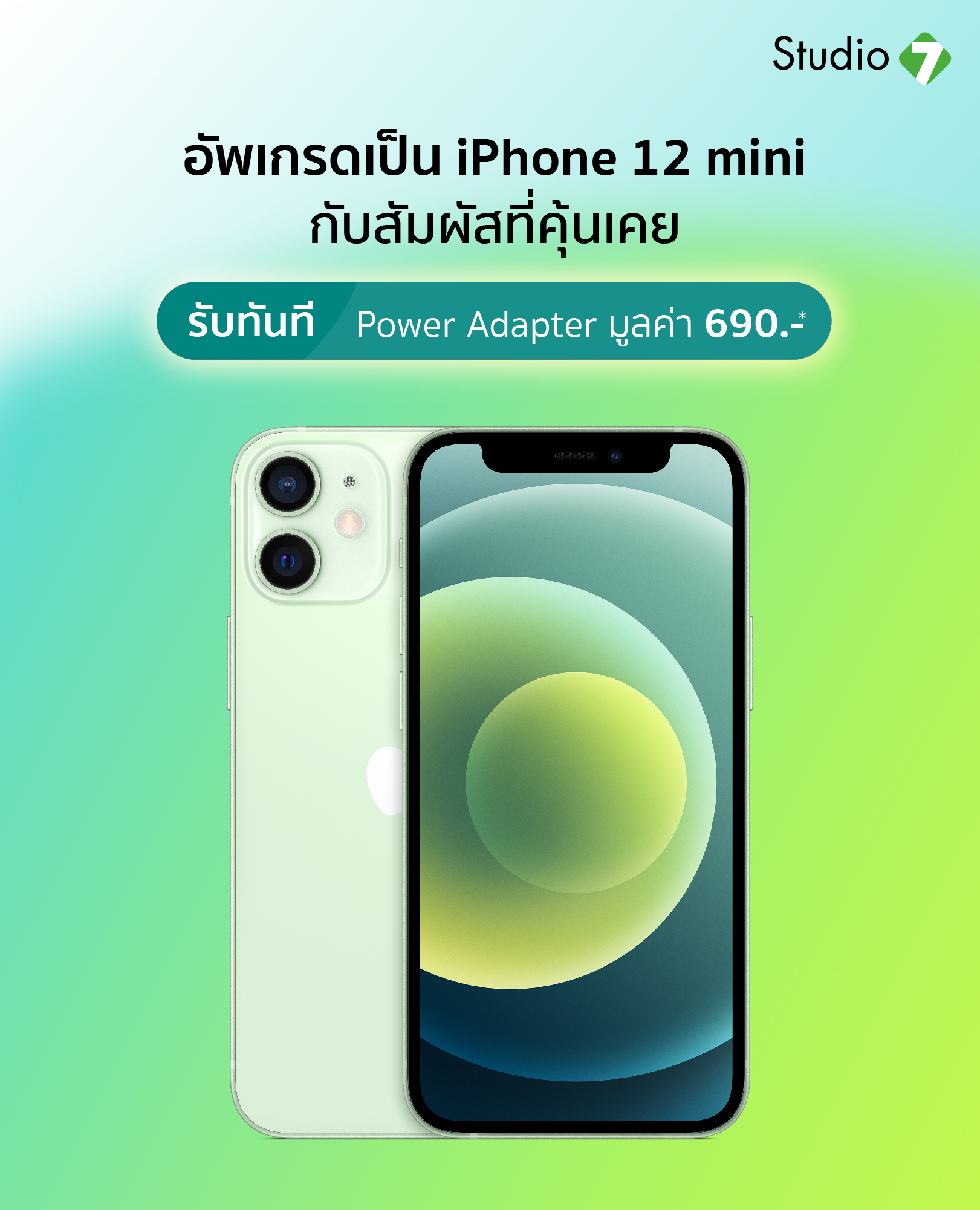 ใครท่ีกำลังตัดสินใจซื้อ iPhone 12 mini เครื่องใหม่อย่าพลาดกับโปรนี้ อัปเกรดเป็น iPhone 12 mini ที่ Studio 7 รับทันที Power Adapter มูลค่า 690 บาท วันนี้ – 31 ธ.ค. 63