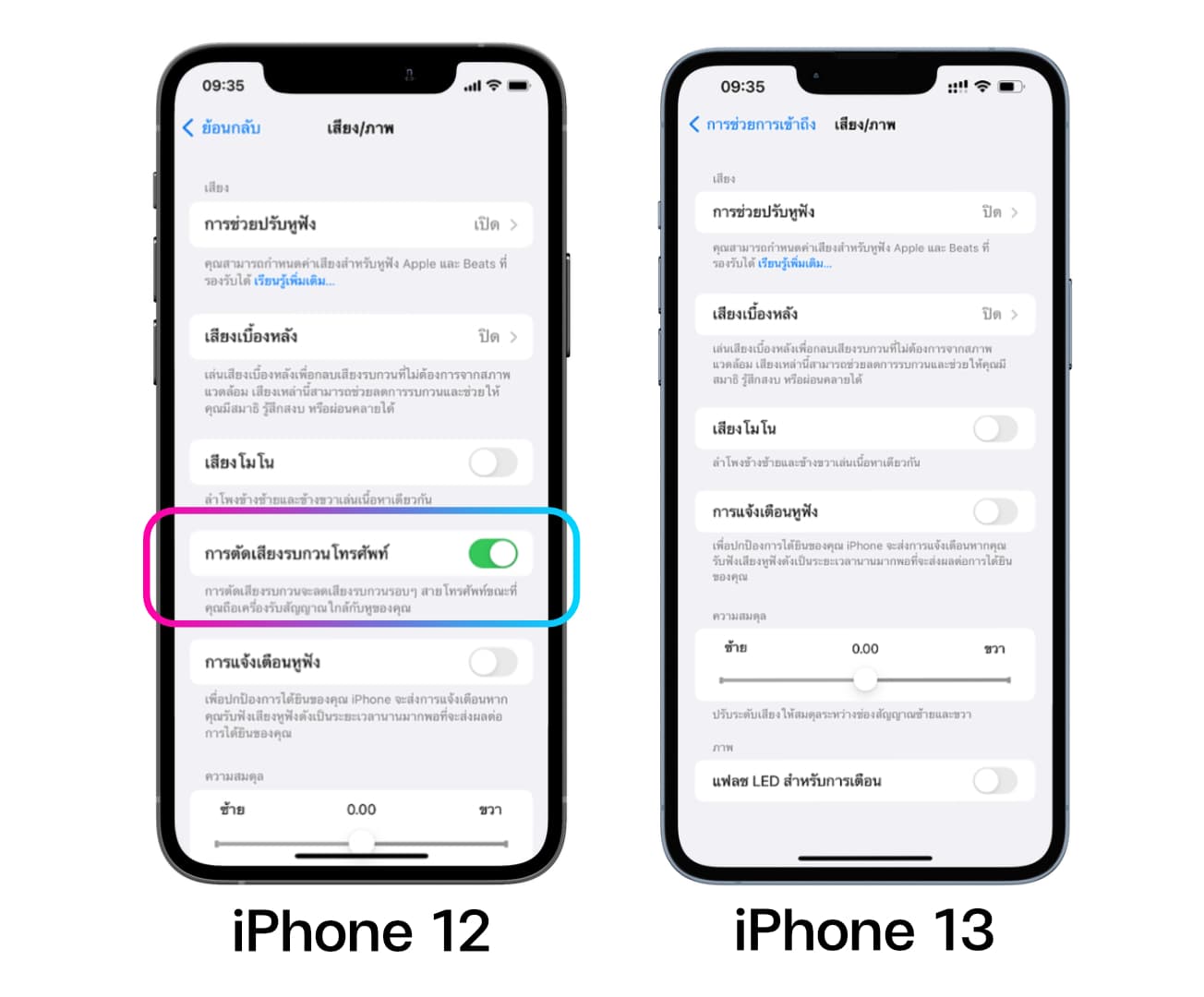 ทาง 9to5Mac รายงานข้อมูลอ้างอิงจาก Apple Support ว่า การที่ฟีเจอร์ “ตัดเสียงรบกวนโทรศัพท์” ไม่มีใน iPhone 13 ทั้งที่รุ่นเก่ายังใช้ได้
