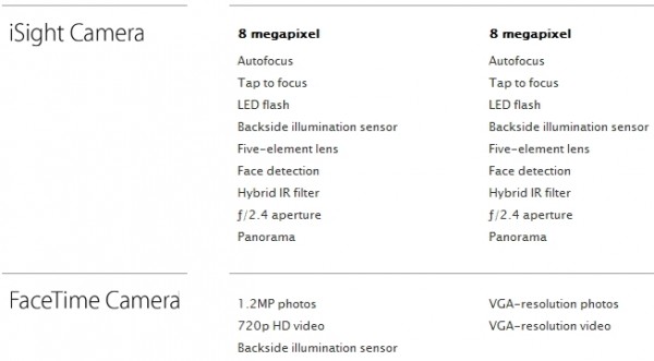 กล้องหลังนั้นสเปคเหมือนกันเด๊ะ ส่วนกล้องหน้า iPhone 5 จะดีกว่าหน่อยเพราะรองรับ HD
